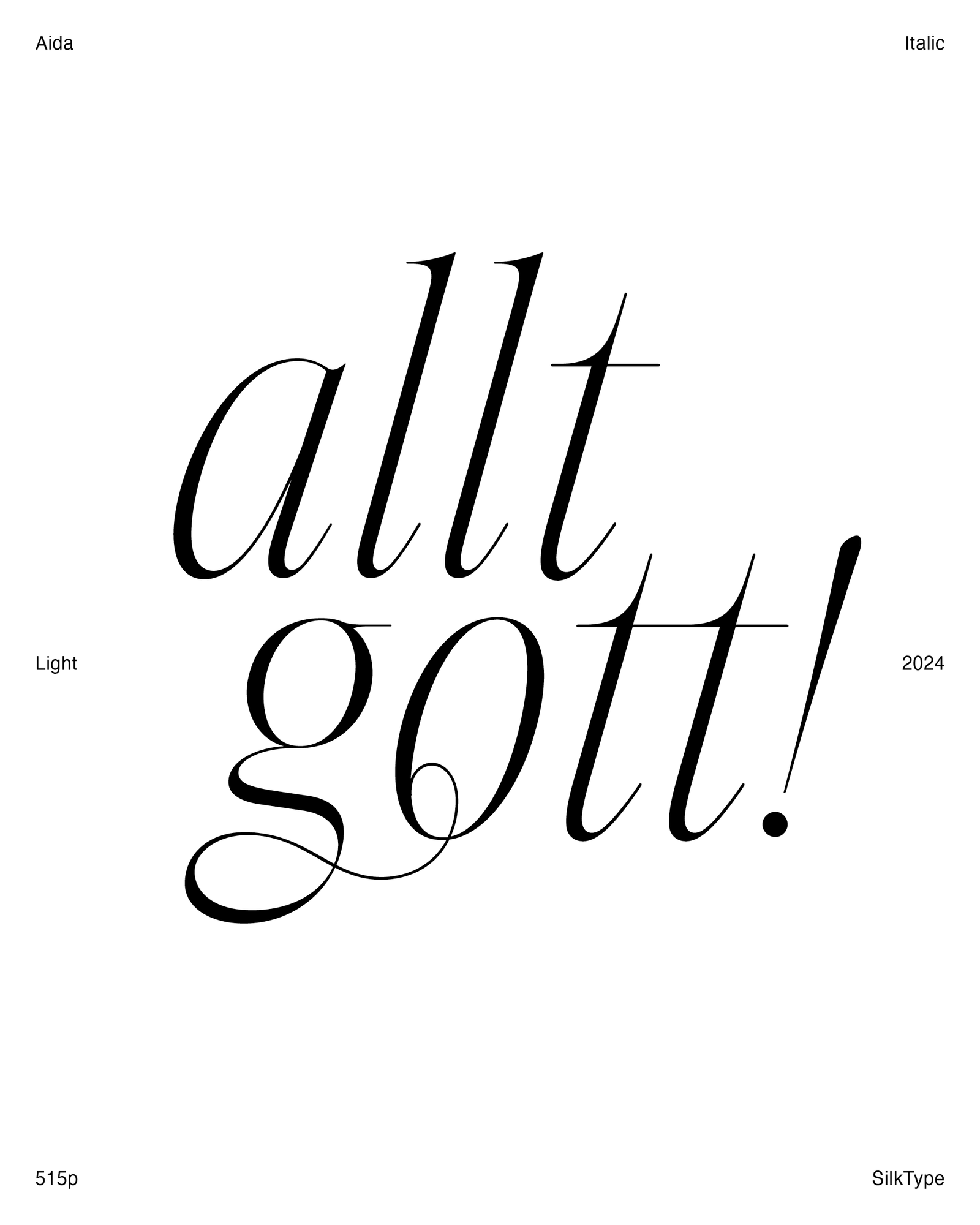 True italics are more than just a slanted version of a typeface—they have their own distinct shapes, proportions, and movement. Unlike mechanically skewed obliques, true italics are carefully designed to bring a natural, flowing rhythm to text. In SilkType fonts, italics add personality and contrast, whether used for emphasis, branding, or editorial design. With unique letterforms and refined details, they create a dynamic balance alongside their upright counterparts.