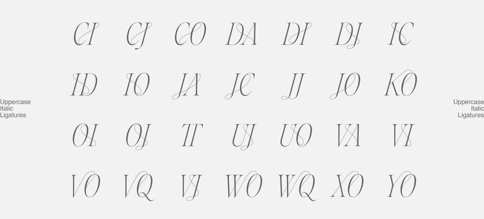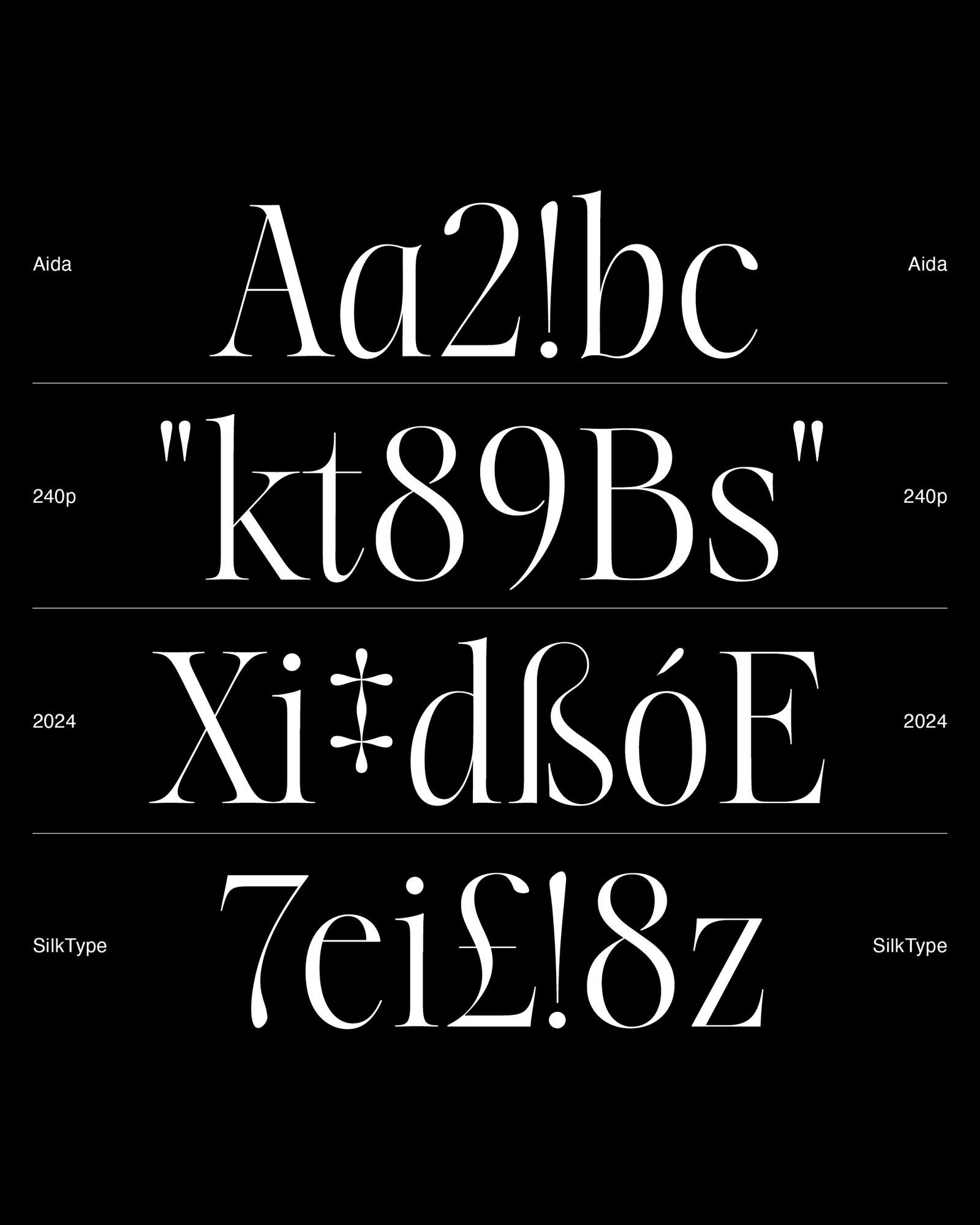 Aida is a high-contrast display typeface made for elegant, eye-catching design. With its extra thin serifs and hairlines, it brings a sharp, refined look to headlines, fashion branding, and editorial layouts. Now available as a full family of 10 styles—from Light to Bold, in both Roman and Italic—Aida gives you more ways to strike the right tone. It also includes over 100 decorative ligatures and alternates, so you can add personality and flow to any design. Whether you're going for sleek and minimal or expressive and high-impact, Aida has the range to support bold ideas with subtle detail.